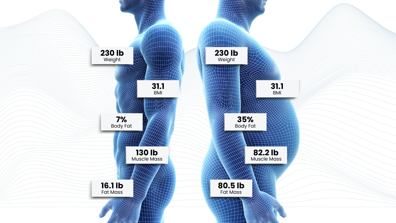 That’s because body weight is influenced by multiple components. A 10-pound gain could mean 10 pounds of fat, 10 pounds of muscle, a mix of both, or even fluctuations in water retention. Without distinguishing between these, weight by itself doesn’t reveal much about actual progress.